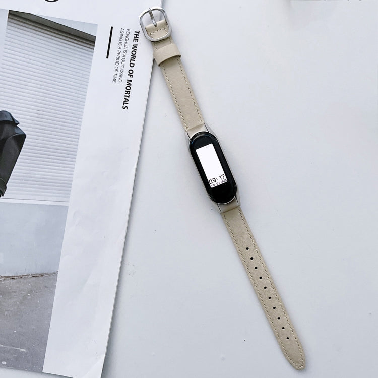 Correa de Cuero para Xiaomi Mi Band 5 / 6 con 8 Hebillas (Blanco Marfil)