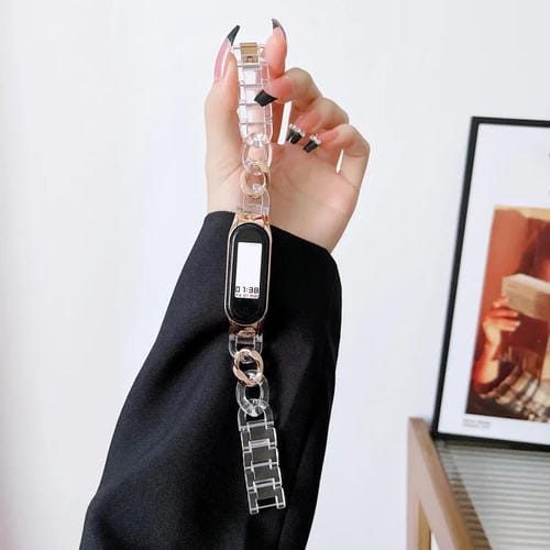 Correa de Reloj para Xiaomi Mi Band 5 y 6 Resina con Marco de Metal (Oro Rosa)