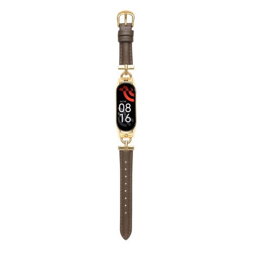 Correa para Xiaomi Mi Band 5 / 6 Acero Forma de D con Correa Cuero Genuino (Oro Dark Brown)