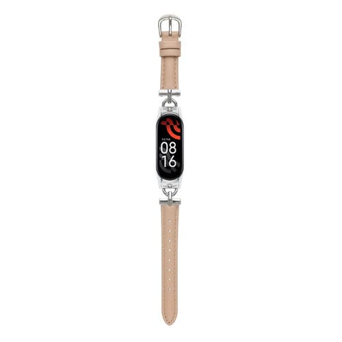 Correa para Xiaomi Mi Band 7 Acero en Forma de D con Correa de Cuero Genuino (Albaricoque Plateado)