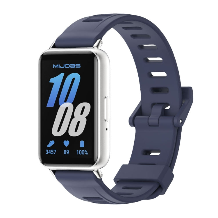 Correa de Silicona para Samsung Galaxy Fit 3 Mijobs con Orificio Plano (Azul Medianoche + Plateado)