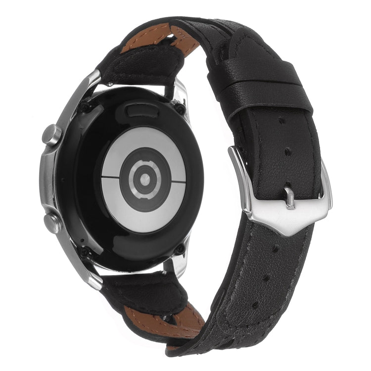 Banda de Reloj Crazy Horse Leather Retro para Samsung Huawei 22mm (Hebilla Plata Negra)
