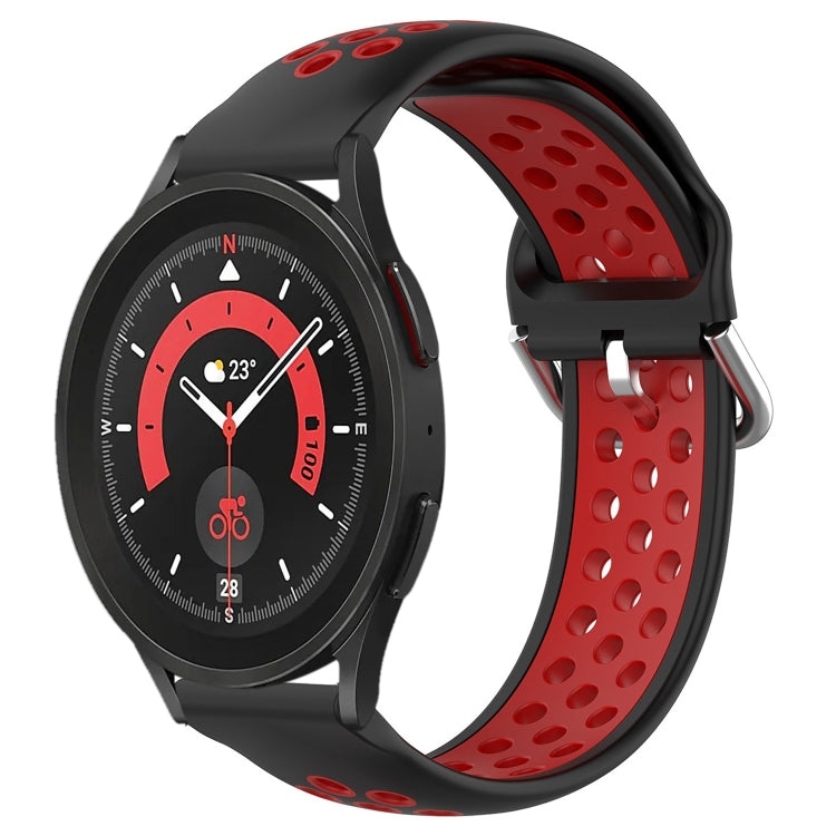 Banda de Reloj de Silicona Deportiva para Samsung Galaxy Watch 5 40mm 20mm Perforada (Negro + Rojo)