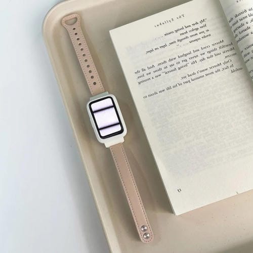 Correa de Reloj para Xiaomi Mi Band 7 Pro de Cuero con Remaches Dobles (Rosa)