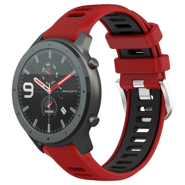 Correa para Amazfit GTR 47mm 22mm Textura Cruzada Silicona con Hebilla de Acero (Rojo + Negro)