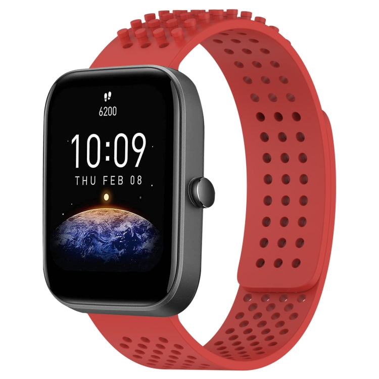 Correa de Reloj Amazfit Bip3 Silicona Puntos 3D Transpirables Orificios 20mm (Rojo)