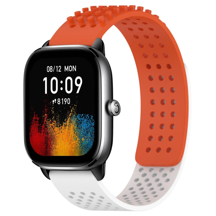 Correa de Silicona para Amazfit GTS 4 con Puntos 3D Transpirables y Orificios 20mm (Naranja + Blanco)