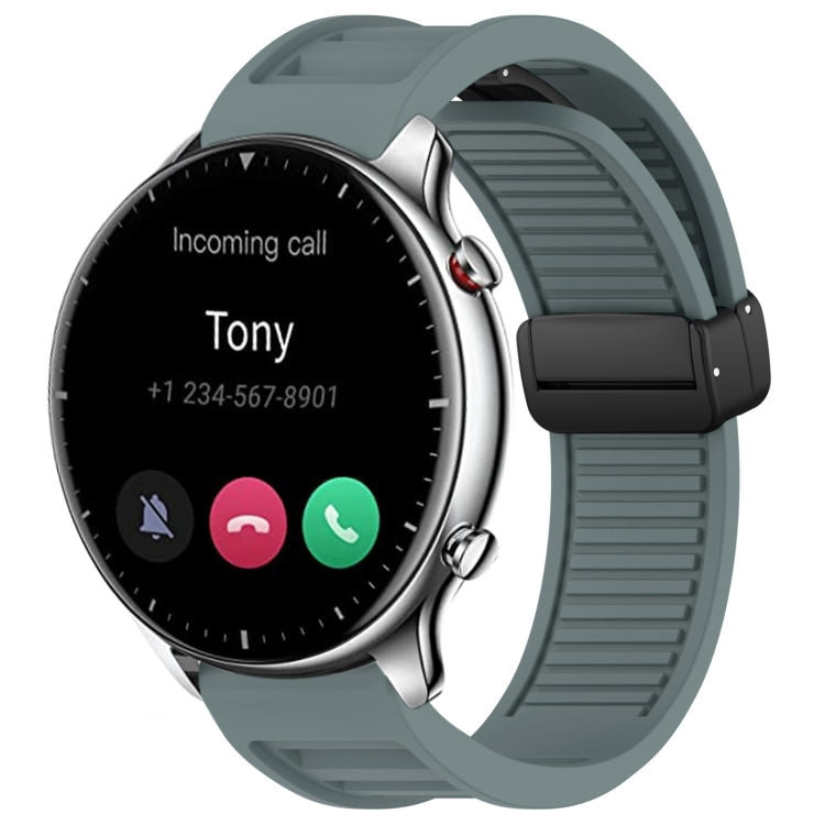 Correa de Silicona para Amazfit GTR 2E con Hebilla Magnética Plegable 22mm (Gris)