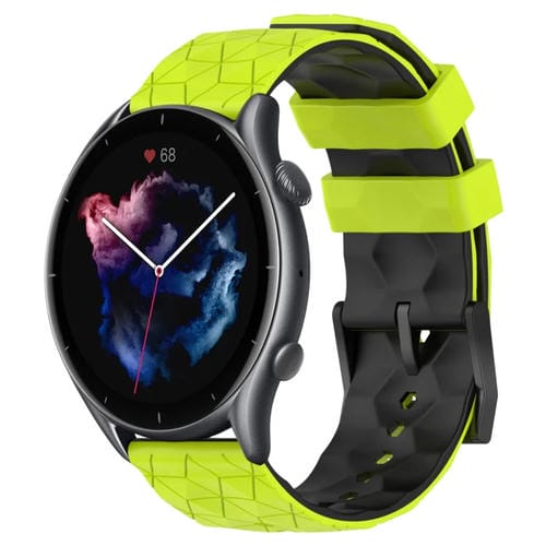 Banda de Reloj para Amazfit 3 22mm Silicona Textura de Fútbol Dos Colores (Verde Lima + Negro)