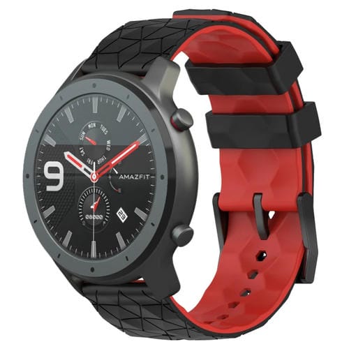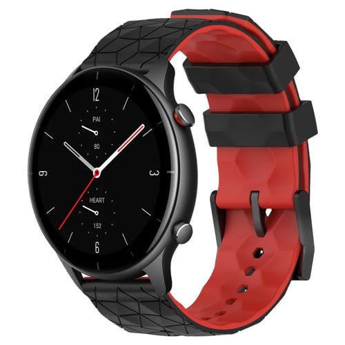 Banda de Reloj Amazfit GTR 2E 22mm Silicona Textura de Fútbol Dos Colores (Negro + Rojo)