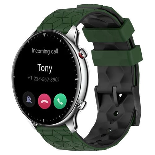 Banda de Reloj para Amazfit GTR 2 22mm Silicona Textura de Fútbol Dos Colores (Verde Militar + Negro)