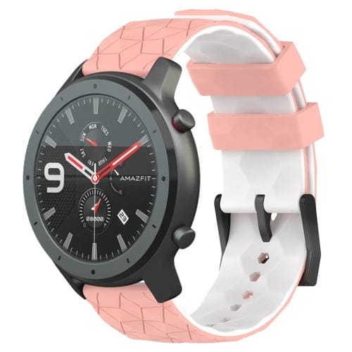 Banda de Reloj para Amazfit GTR 2E 22mm Silicona Textura de Fútbol Dos Colores (Rosa + Blanco)