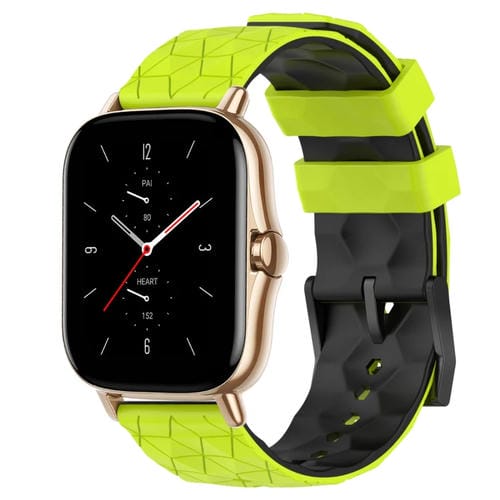 Banda de Reloj de Silicona para Amazfit GTS 2 20mm Textura de Fútbol (Verde Lima + Negro)