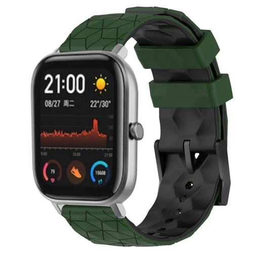 Banda de Reloj silicona para Amazfit GTS 20mm textura fútbol (Verde Militar + Negro)