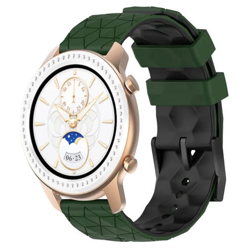 Banda de Reloj para Amazfit GTR 3 22mm Silicona Textura de Fútbol Dos Colores (Verde Militar + Negro)