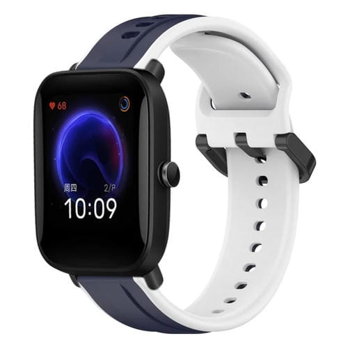 Correa de Reloj para Amazfit Pop 20mm Convex Loop Silicona Dos Colores (Azul Medianoche + Blanco)