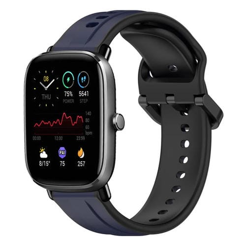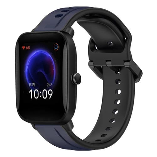 Correa de Reloj para Amazfit Pop Pro de Silicona Dos Colores 20mm (Azul Medianoche + Negro)