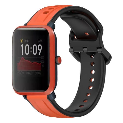 Correa de Reloj Amazfit Pop Pro Silicona Dos Colores Bucle Convexo 20mm (Naranja + Negro)