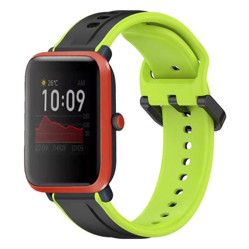 Correa para Amazfit Bip 3 Silicona Dos Colores Bucle Convexo 20mm (Negro + Lima)