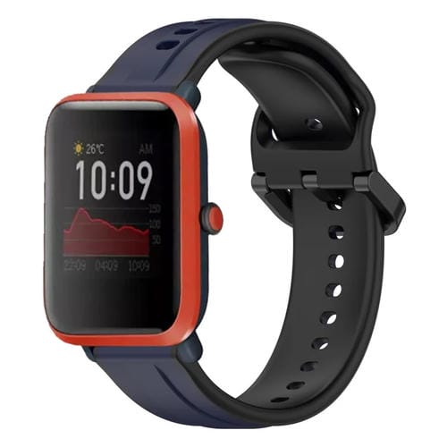 Correa de Reloj para Amazfit Pop 20mm Convex Loop Silicona Dos Colores (Azul Medianoche + Negro)