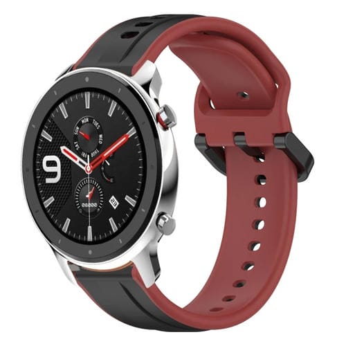 Correa de Silicona para Amazfit GTR 42mm 20mm Dos Colores con Bucle Convexo (Rojo + Negro)