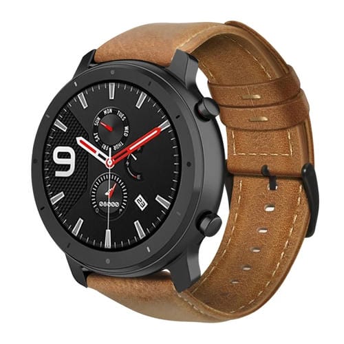 Correa de Reloj de Cuero Genuino para Amazfit GTR 47mm Pace Stratos (Marrón Amarillo)