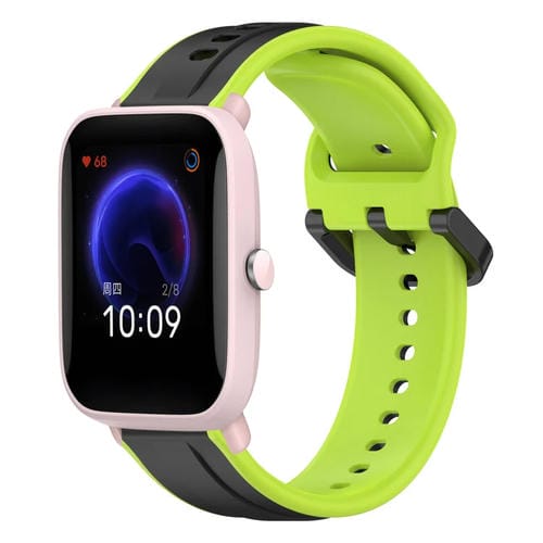 Correa de Reloj Amazfit Pop Pro Silicona Dos Colores Bucle Convexo 20mm (Negro + Lima)