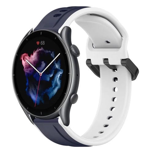Correa de Silicona para Amazfit GTR 3 22mm con Bucle Convexo (Azul Medianoche + Blanco)