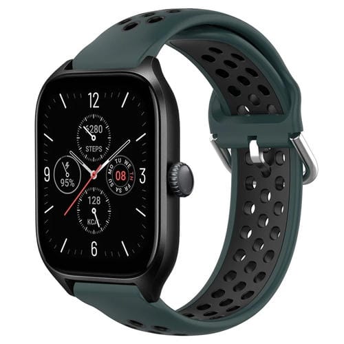 Correa de Reloj Amazfit GTS 4 20mm Silicona Deportiva Transpirable Perforada (Verde Oliva + Negro)
