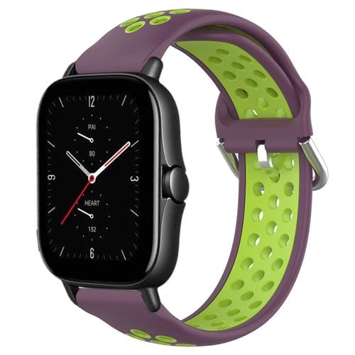 Correa de Reloj Amazfit GTS 2E 20mm Silicona Deportiva Transpirable Perforada (Púrpura + Lima)