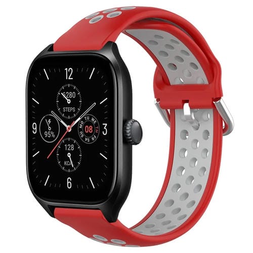 Correa de Reloj Amazfit GTS 4 20mm silicona deportiva transpirable perforada (Rojo + Gris)