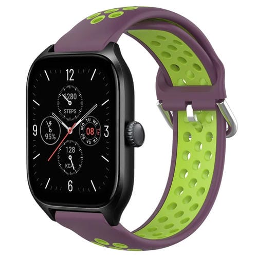 Correa de Reloj Amazfit Pop Pro 20mm Silicona Deportiva Transpirable Perforada (Púrpura + Lima)