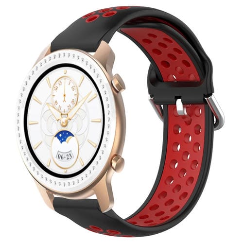 Correa de Reloj Amazfit GTR 3 22mm silicona deportiva transpirable perforada (Negro + Rojo)