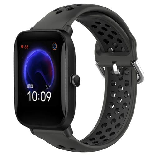 Correa de Reloj para Amazfit Pop 20mm Silicona Deportiva Transpirable Perforada (Negro + Gris)