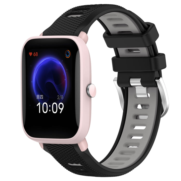 Correa de Reloj Amazfit Pop 22mm Textura Cruzada Silicona con Hebilla de Acero (Negro + Gris)