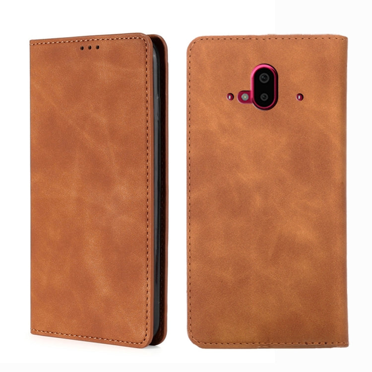 Flechas para Fujitsu F-52B Skin Feel Magnetic Horizontal Flip Leather Telephone (Marrón Oscuro)