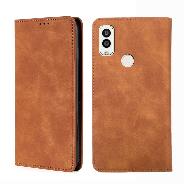 Funda Cuero para Kyocera Ky-51B Skin Feel Tapa Horizontal Magnética (Marrón Claro)