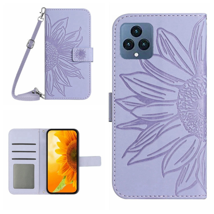 Funda Flip de Cuero para T-Mobile Revvl 6 5G con Cordón y Diseño Sun Flower (Púrpura)