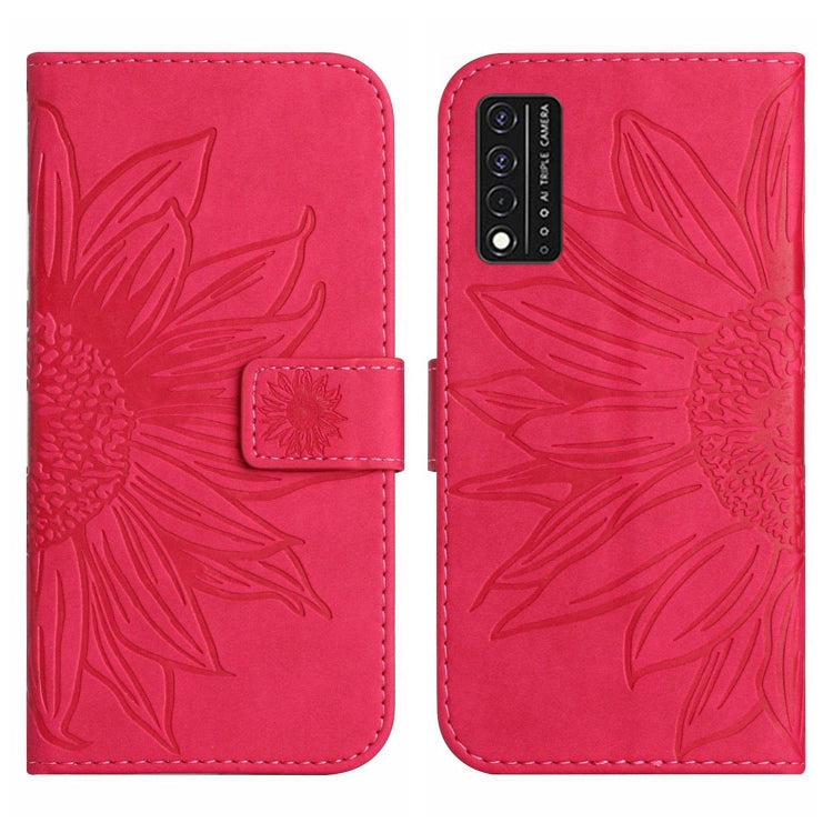 Funda Flip de Cuero T-Mobile Revvl 6 5G con Cordón y Diseño Sun Flower (Rose Red)