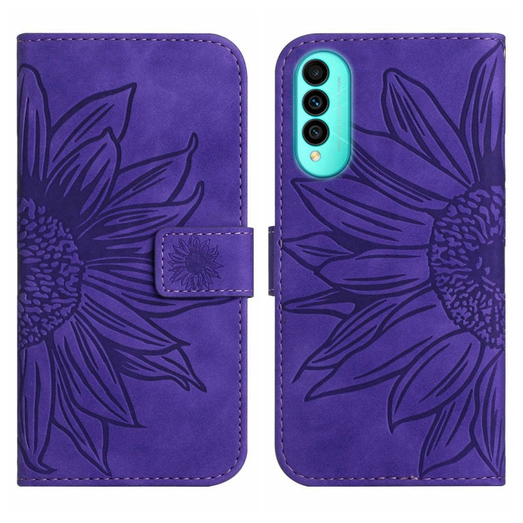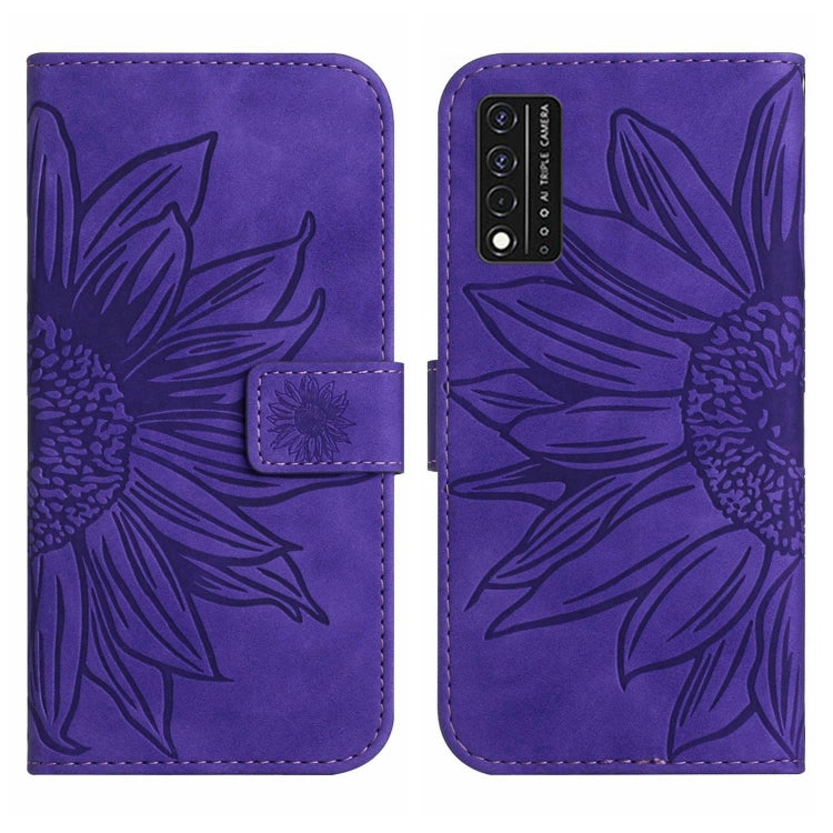 Funda Flip de Cuero T-Mobile Revvl 6 5G con Cordón y Diseño Sun Flower (Morado Oscuro)
