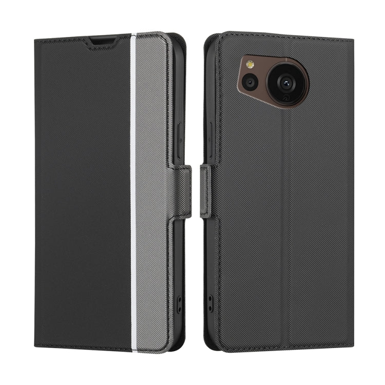 Funda de Cuero para Sharp Aquos Sense7 Plus con Hebilla Lateral y Textura de Sarga (Negro)