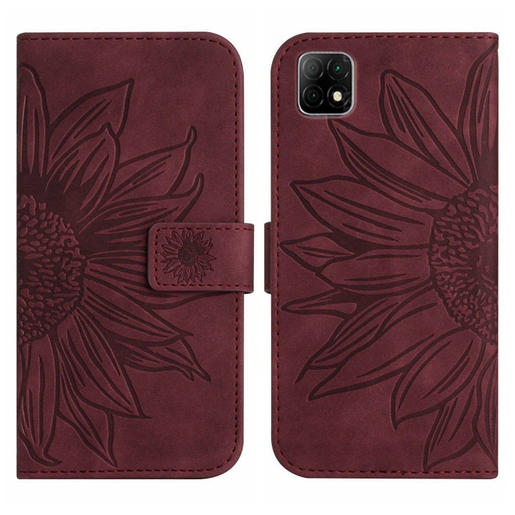 Funda de cuero flip para T-Mobile Revvl V+ 5G con patrón Sun Flower y cordón (Rojo Vino)