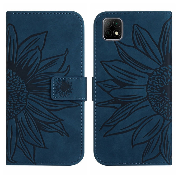 Funda de Cuero Flip para T-Mobile Revvl V+ 5G con Patrón de Girasol y Cordón (Azul Oscuro)
