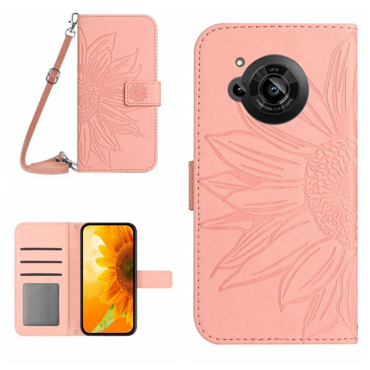 Funda Flip de Cuero para Sharp Aquos R7 P7 Skin Feel con Cordón y Patrón Sun Flower (Rosa)