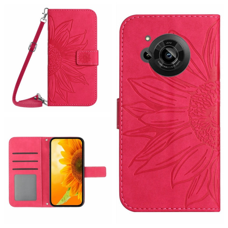 Funda Flip de Cuero para Sharp Aquos R7 / P7 Skin Feel con Cordón y Patrón Sun Flower (Rose Red)
