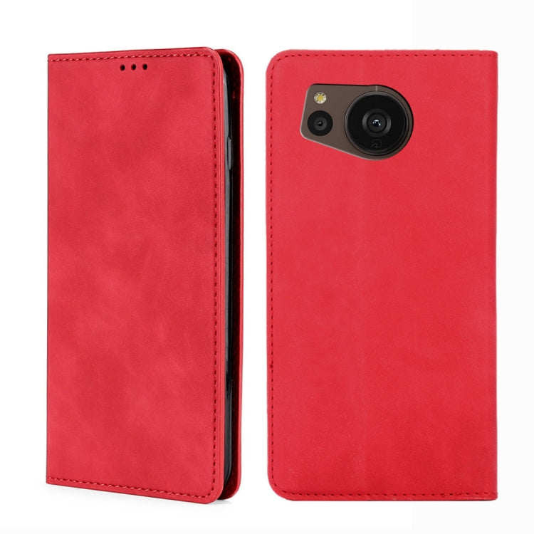 Funda para Sharp Aquos Sense7 Plus Skin Feel Flip Horizontal Magnética de Cuero (Rojo)