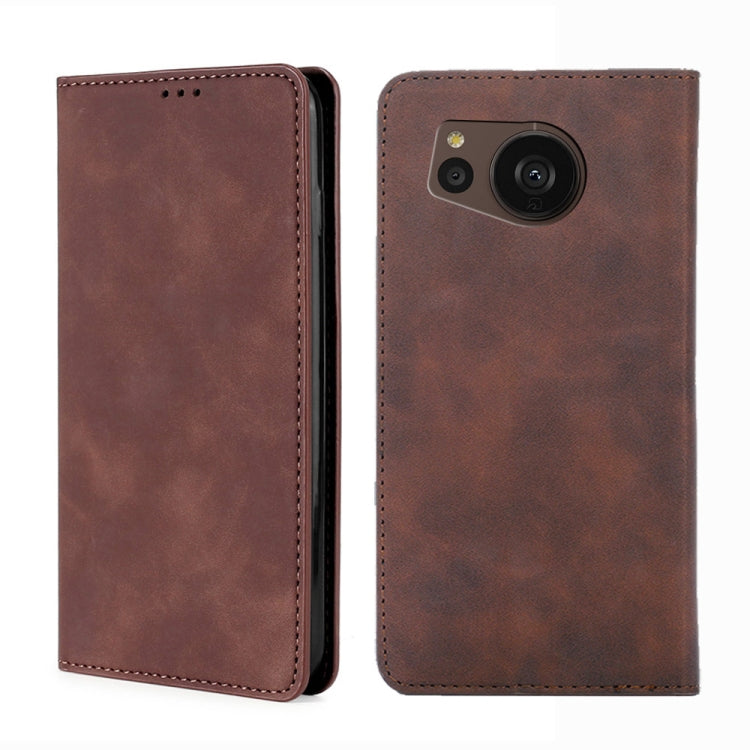 Funda de Cuero para Sharp Aquos Sense7 Plus Skin Feel Magnetic Horizontal Flip (Marrón Claro)