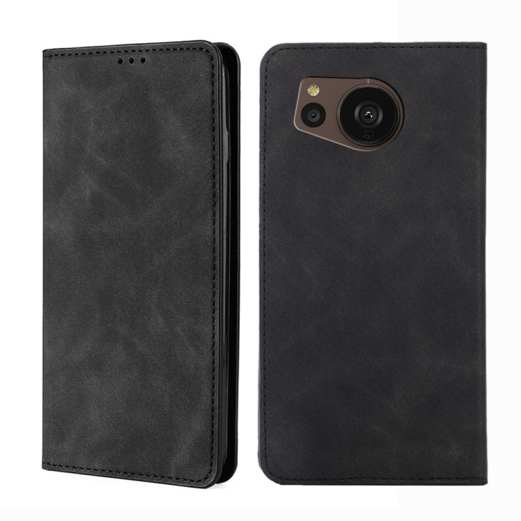 Funda para Sharp Aquos Sense7 Plus Skin Feel Flip Horizontal Magnética de Cuero (Negro)