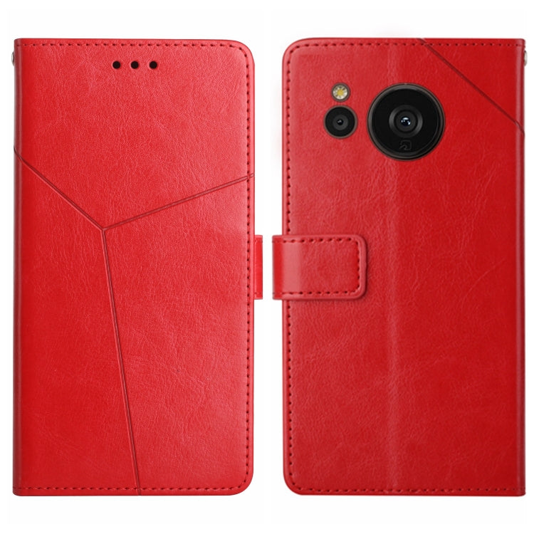 Funda de Cuero para Sharp Aquos Sense7 Sh-V48 Ht01 con Patrón en Forma de Y y Tapa (Rojo)