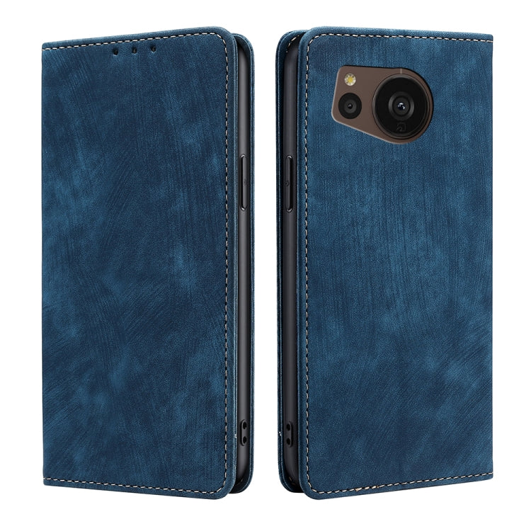 Funda para Sharp Aquos Sense7 Plus Skin Feel Magnética Horizontal de Cuero (Azul)